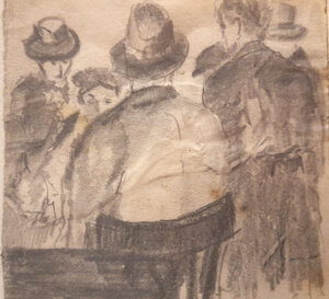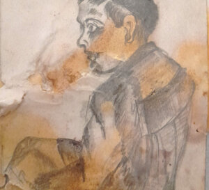 L' artista ha probabilmente iniziato disegnando con matita su carta, ma quasi tutte le opere del periodo bellico, sono state distrutte.
