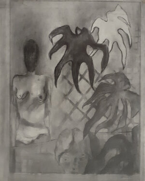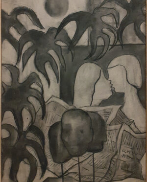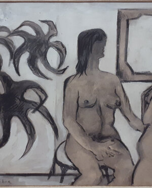 In quel periodo disegna mani appuntite, volti come scheletri e nudi senza braccia ( “Oggetti” 1948, “Pensieri” 1947, “Pensieri II” 1948).